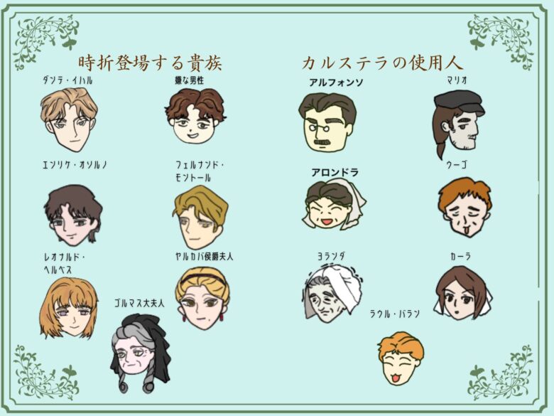 アルメナーラ伯爵 :イネスの前世、ヴァレスティナ家に戻されたイネスが皇后から後妻に入るようにと命じられた相手 ホセ・アルメナーラの父親