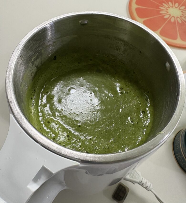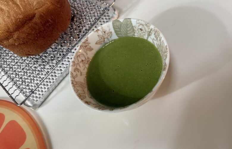 調理開始から約30分。完成したスープをカップに注ぐと、鮮やかなグリーンが目を引きます。一口飲んで驚いたのは、その「舌触り」。裏ごししたような、一切のザラつきがない完璧なポタージュに仕上がっていました。乾燥ローリエが残るかと思いましたが、全く感じません。じゃがいもの甘みとほうれん草の風味が濃縮されており、これがボタン一つでできるのは驚きです。